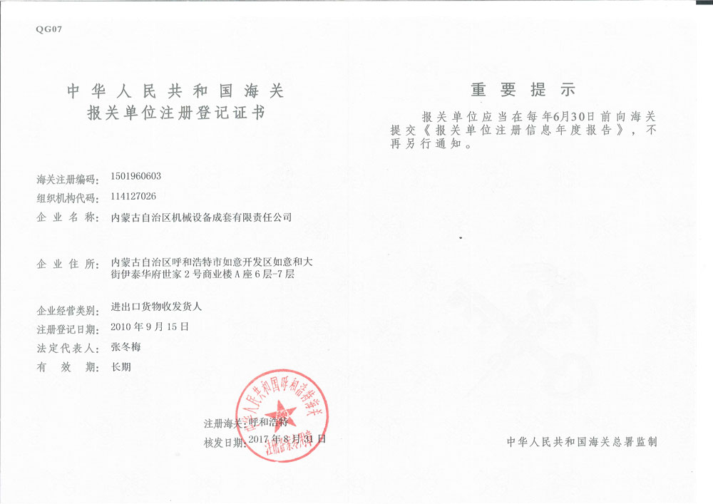 內蒙古自治區機械設備成套有限責任公司營業(yè)執(zhí)照