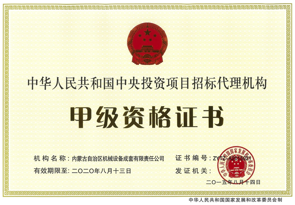 內蒙古招標采購行業(yè)信用AAA級單位資格證書